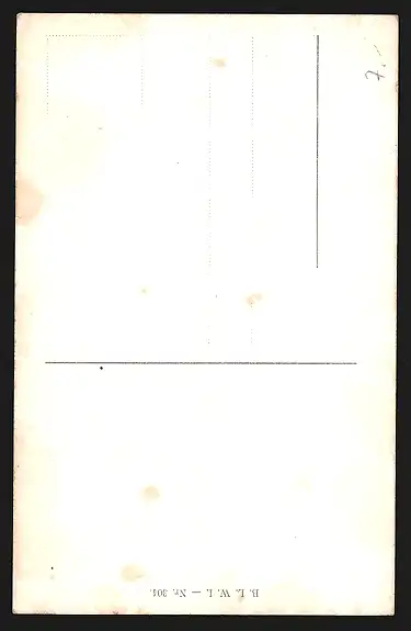 Personenbezogene Daten auf der Rückseite der Karte wurden durch blauen Textmarker unkenntlich gemacht. Die blauen Stellen sind auf die Vorderseite durchgeweicht und wirken sich negativ auf das Postkartenfoto aus