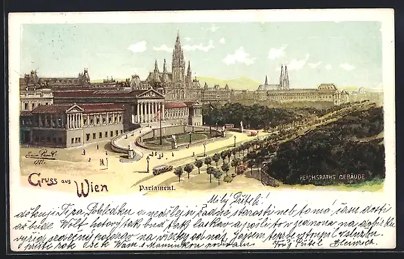 Künstler-AK Erwin Pendl: Wien, Reichsrathsgebäude mit Park