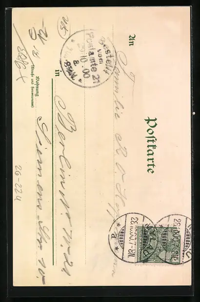 alte Ansichtskarte, gelaufen 1900, guter Zustand