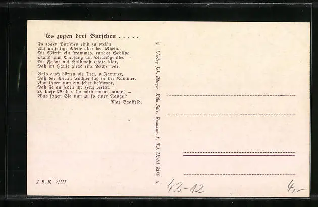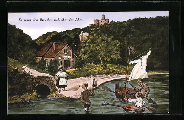 Künstler-AK Es zogen drei Burschen wohl über den Rhein