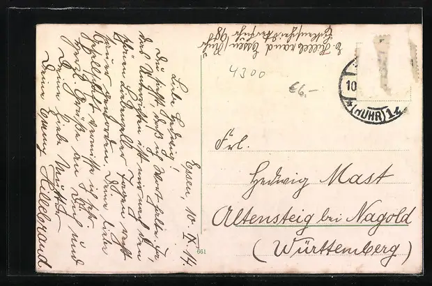 alte Ansichtskarte, gelaufen 1914, Briefmarke entfernt, guter Zustand