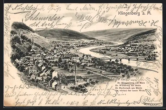Künstler-AK Eugen Felle: Klingenberg a. M., Teilansicht mit Kirche
