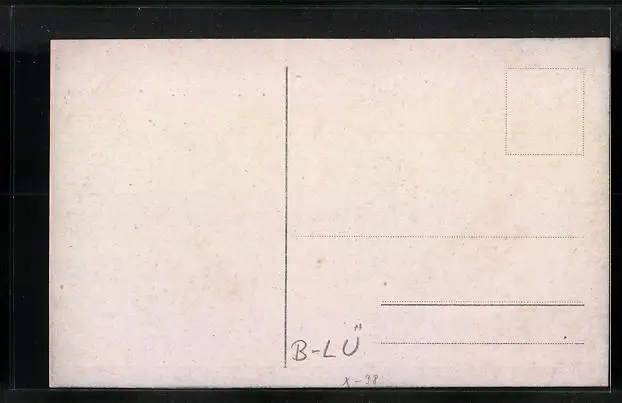 Personenbezogene Daten auf der Rückseite der Karte wurden durch blauen Textmarker unkenntlich gemacht. Die blauen Stellen sind auf die Vorderseite durchgeweicht und wirken sich negativ auf das Postkartenfoto aus
