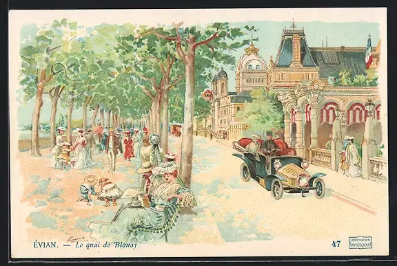 Künstler-AK Évian, Le quai de Blonay