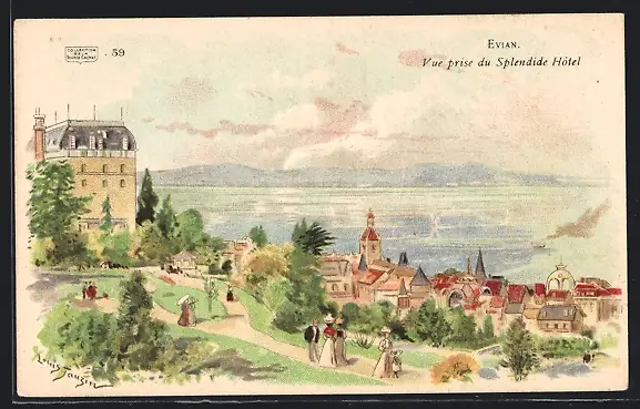 Künstler-AK Evian, Vue prise du Splendide Hôtel