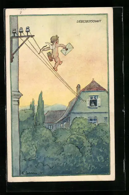 Künstler-AK F. Gareis: Liebesbotschaft von Amor