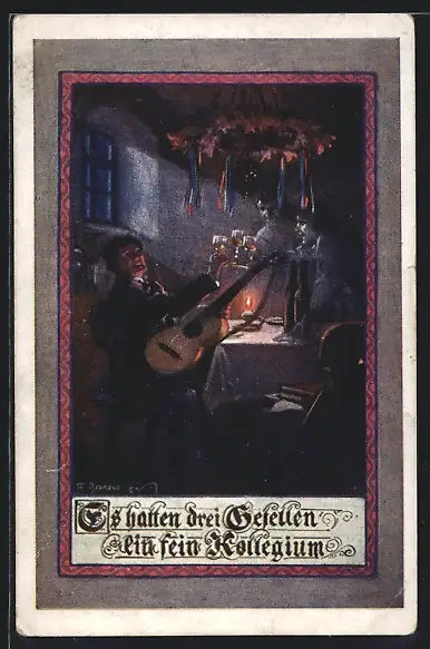 Künstler-AK F. Gareis: Mann mit Gitarre