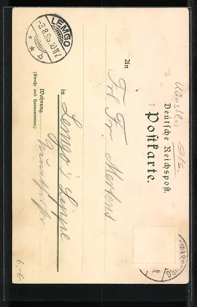 alte Ansichtskarte, gelaufen 1899, Stempelspur, Briefmarke entfernt, guter Zustand