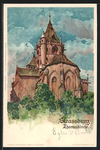 Künstler-AK F. Hoch: Strassburg, Thomaskirche um 1900