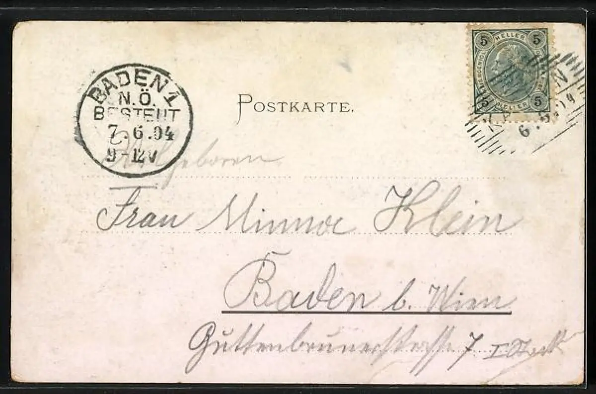 alte Ansichtskarte, gelaufen 1904, Eckknicke li. unten u. re. oben, Stempelspur, guter Zustand