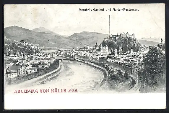 Künstler-AK F. Kulstrunk: Salzburg, Ansicht der Stadt von Mülln aus