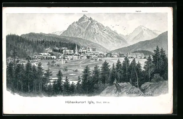 Künstler-AK F.A.C.M. Reisch: Der Höhenkurort Igls in Tirol