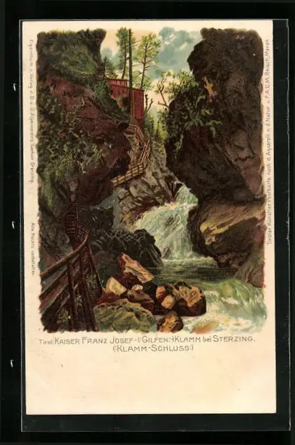 Künstler-AK F.A.C.M. Reisch: Sterzing, Kaiser Franz Josef-Gilfen-Klamm