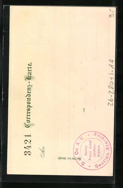 Personenbezogene Daten auf der Rückseite der Karte wurden durch blauen Textmarker unkenntlich gemacht. Die blauen Stellen sind auf die Vorderseite durchgeweicht und wirken sich negativ auf das Postkartenfoto aus