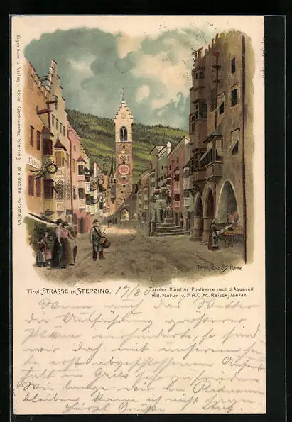 Künstler-AK F.A.C.M. Reisch: Sterzing, Strassenpartie mit Tor