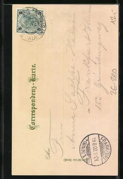 alte Ansichtskarte, gelaufen 1902, Stempelspur, guter Zustand