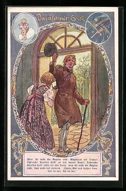 Künstler-AK F.Gareis: Bin ein fahrender Gesell, Beim Abschied vom Mägdelein