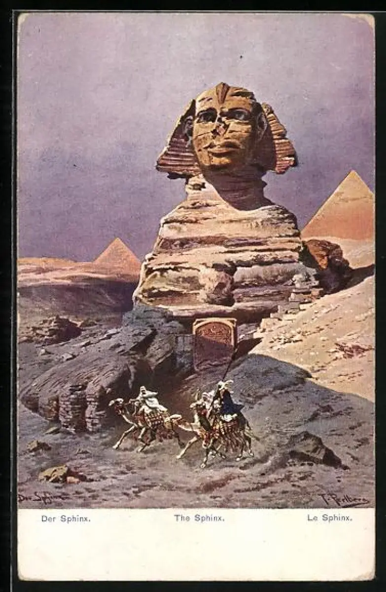 Künstler-AK F.Perlberg: Sphinx, Kamele vor der Sphinx