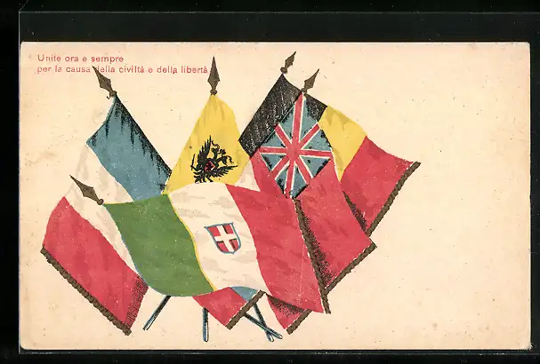 Künstler-AK Fahnen der Alliierten, Propaganda Entente
