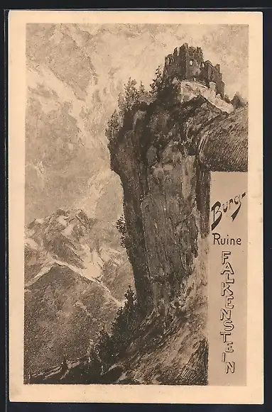 Künstler-AK Falkenstein, Burg-Ruine auf einem Felsvorsprung