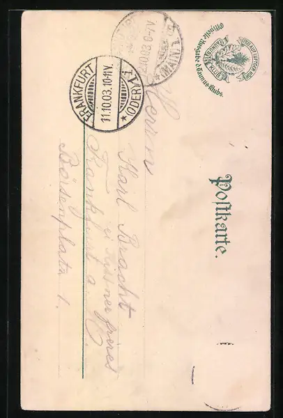 alte Ansichtskarte, gelaufen 1903, Briefmarke entfernt, Eckknicke li., guter Zustand