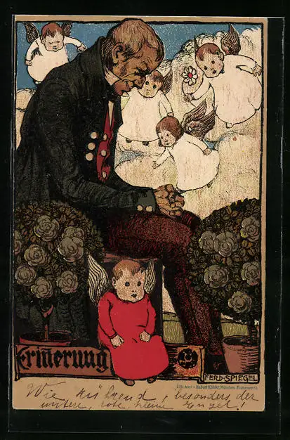 Künstler-AK Ferdinand Spiegel: Erinnerung - Alter Mann mit Engeln