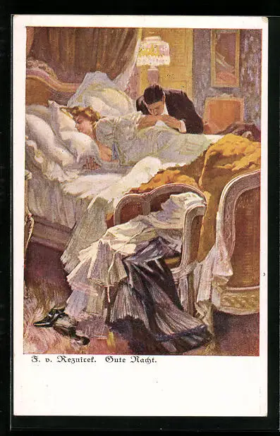 Künstler-AK Ferdinand von Reznicek: Gute Nacht, Kavalier bringt das Fräulein zu Bett