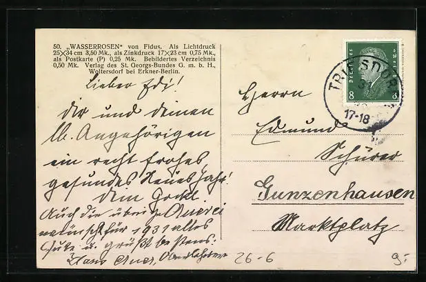 alte Ansichtskarte, gelaufen, guter Zustand