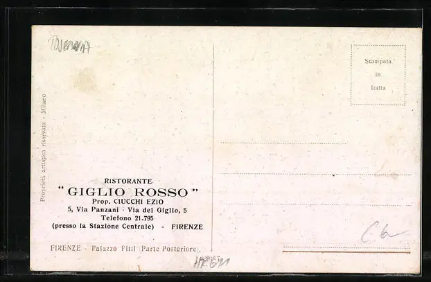Künstler-AK Firenze, Ristorante Giglio Rosso