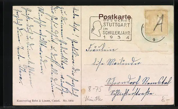 alte Ansichtskarte, gelaufen 1934, Briefmarke entfernt, guter Zustand