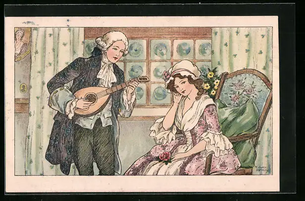 Künstler-AK Florence Hardy: Herr mit Laute bei einer Dame