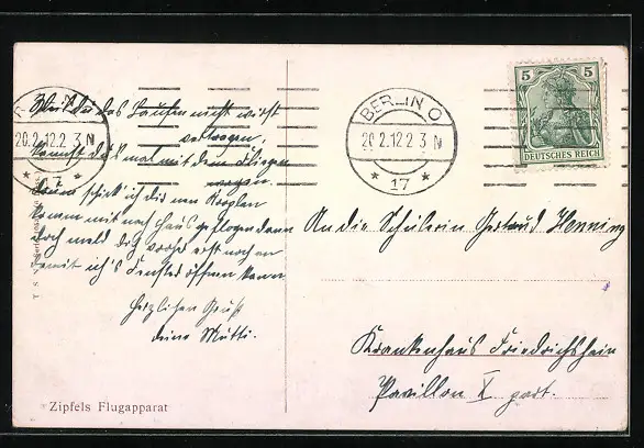 Künstler-AK Flugzeug Zipfels Flugapparat