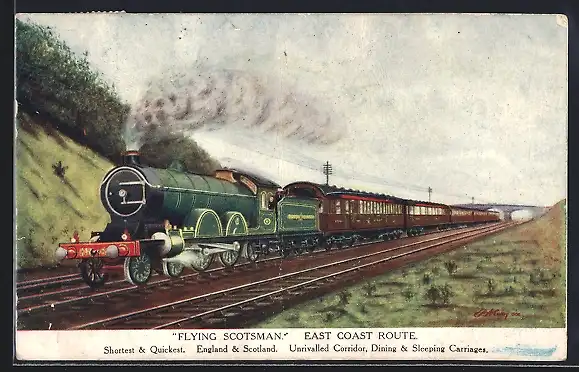Künstler-AK Flying Scotsman, Englische Eisenbahn auf der East Coast Route