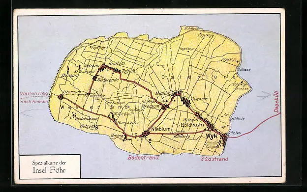 Künstler-AK Föhr, Spezialkarte mit Nieblum, Midlum und Toftum