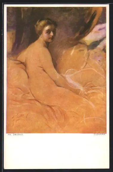 Künstler-AK Franciszek Zmurko: Nackte Dame liegt in den Kissen