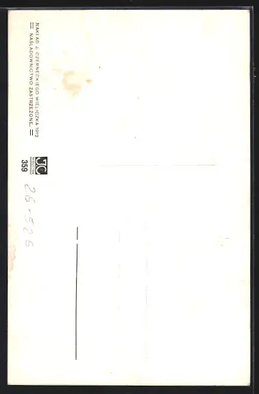 Personenbezogene Daten auf der Rückseite der Karte wurden durch blauen Textmarker unkenntlich gemacht. Die blauen Stellen sind auf die Vorderseite durchgeweicht und wirken sich negativ auf das Postkartenfoto aus