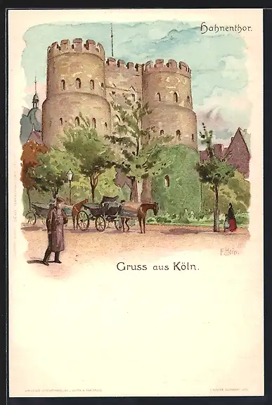 Künstler-AK Franz Hein: Köln, Kutschpartie am Hahnenthor