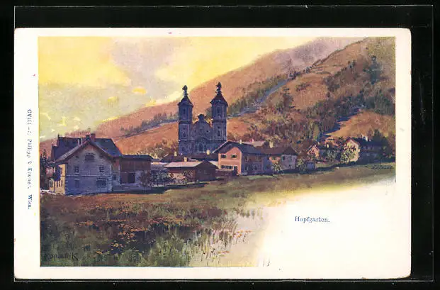 Künstler-AK Franz Kopallik: Hopfgarten, Ortspartie