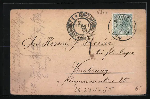gelaufen 1902, vorderseitig Klebe- und Papierreste, guter Zustand