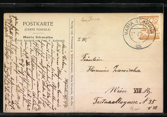 Künstler-AK Franz Kulstrunk: Maria Schmolln, Ortspartie mit Kirche