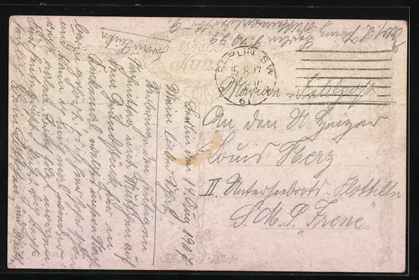 gelaufen 1917 als Feldpost, guter Zustand