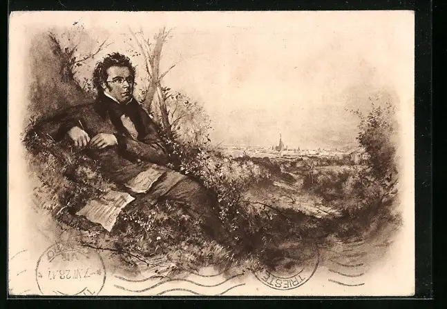 Künstler-AK Franz Schubert beim Komponieren in der Natur