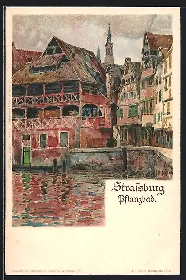 Künstler-AK Franz Xaver Hoch: Strassburg, Partie am Pflanzbad