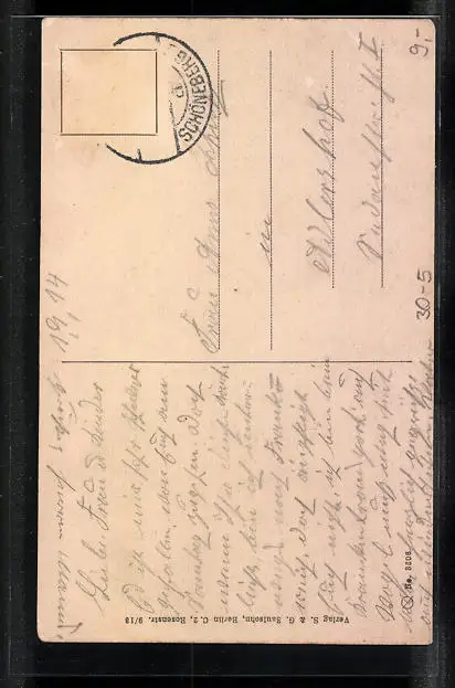 alte Ansichtskarte, gelaufen, Briefmarke entfernt, guter Zustand
