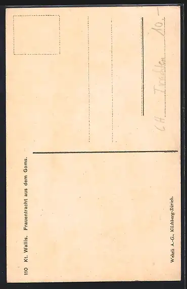 Künstler-AK Frau in Tracht aus dem Goms, Kt. Wallis