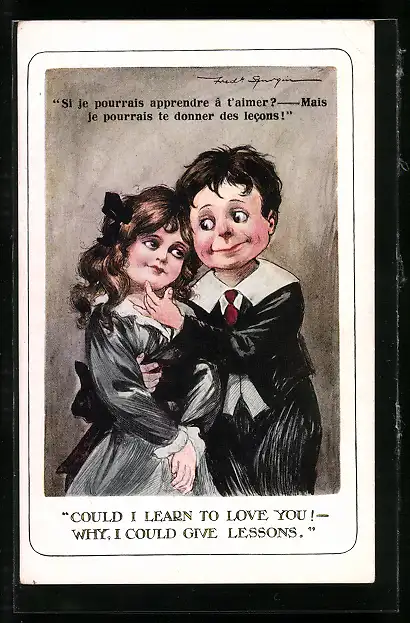 Künstler-AK Fred Spurgin: Could I learn to love you!, Why, I could give lessons, Liebespaar Arm in Arm