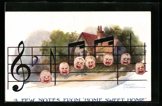Künstler-AK Fred Spurgin: Schreiende Babies als Notenköpfe