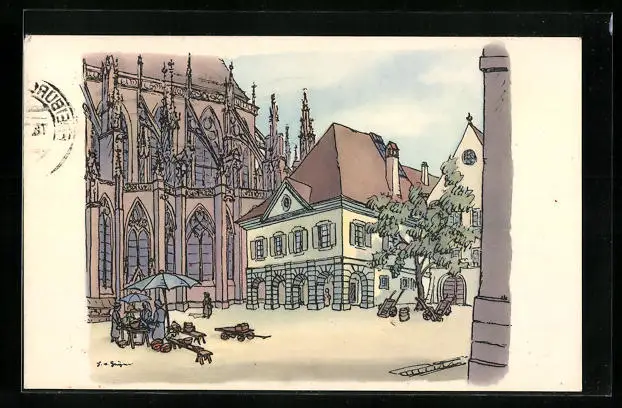 Künstler-AK Freiburg i. Br., ehemalige Stadtwache