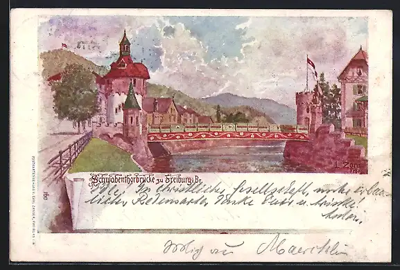 Künstler-AK Freiburg i.B., Schwabenthorbrücke