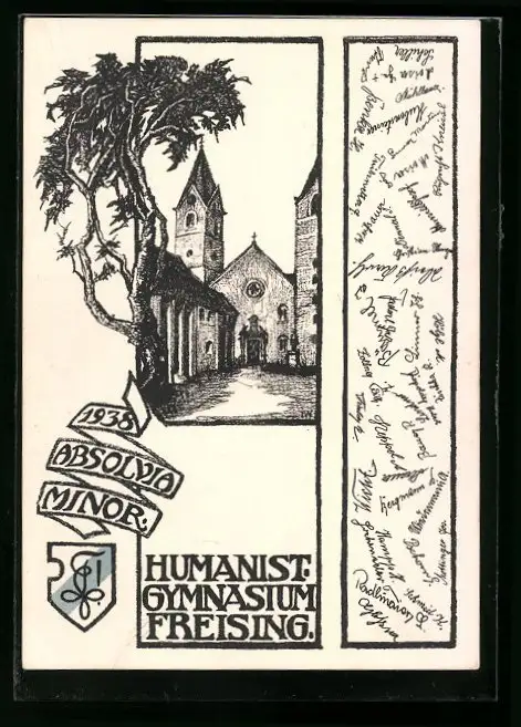 Künstler-AK Freising, Absolvia Humanist. Gymnasium 1938, Kirche